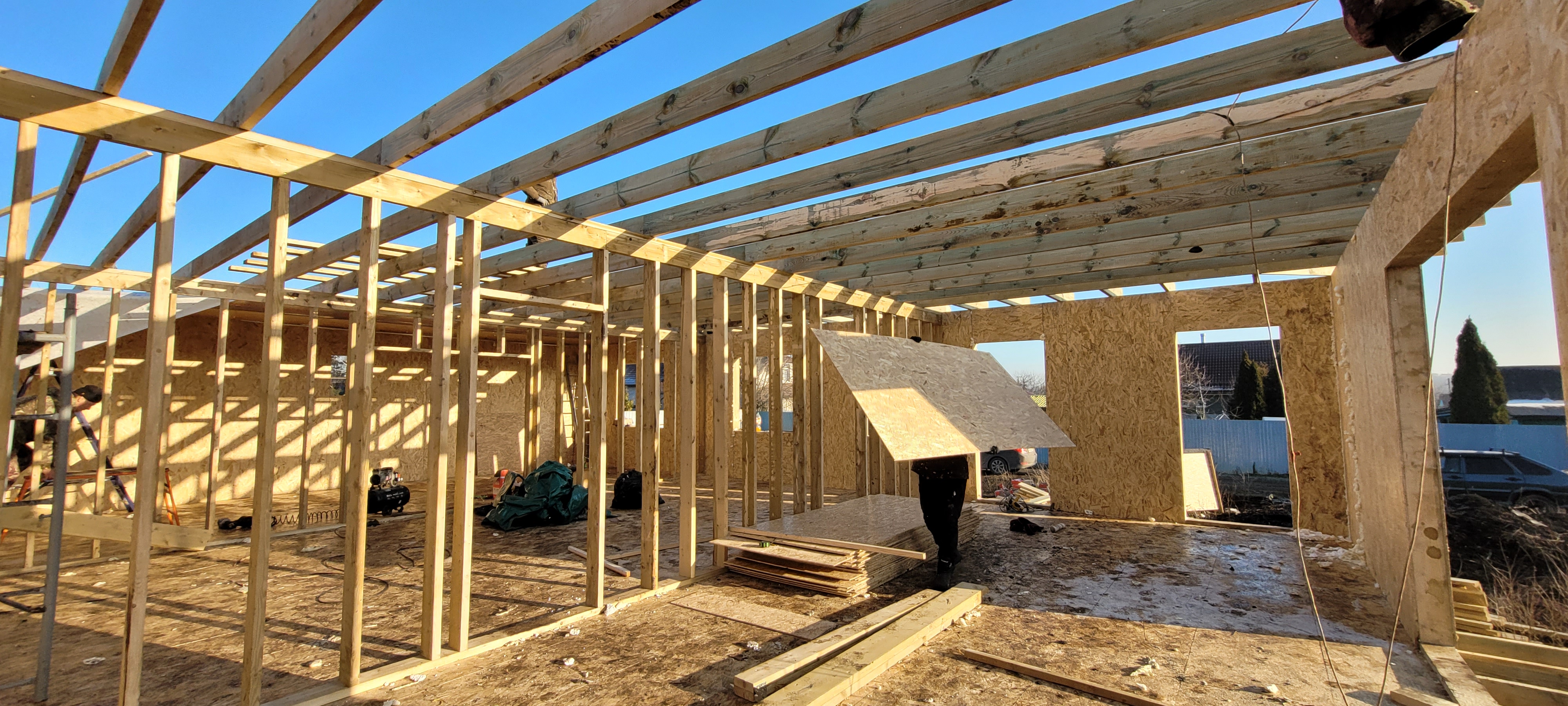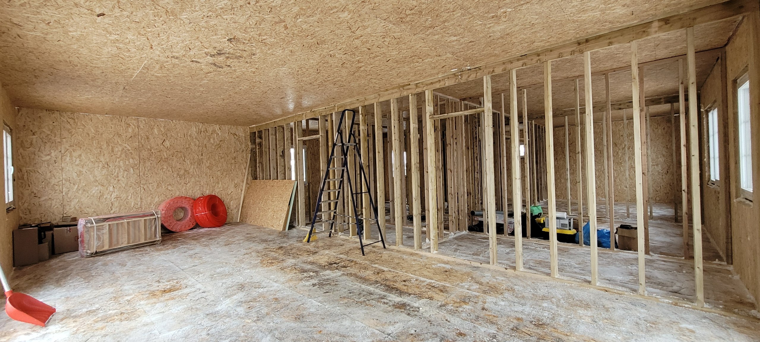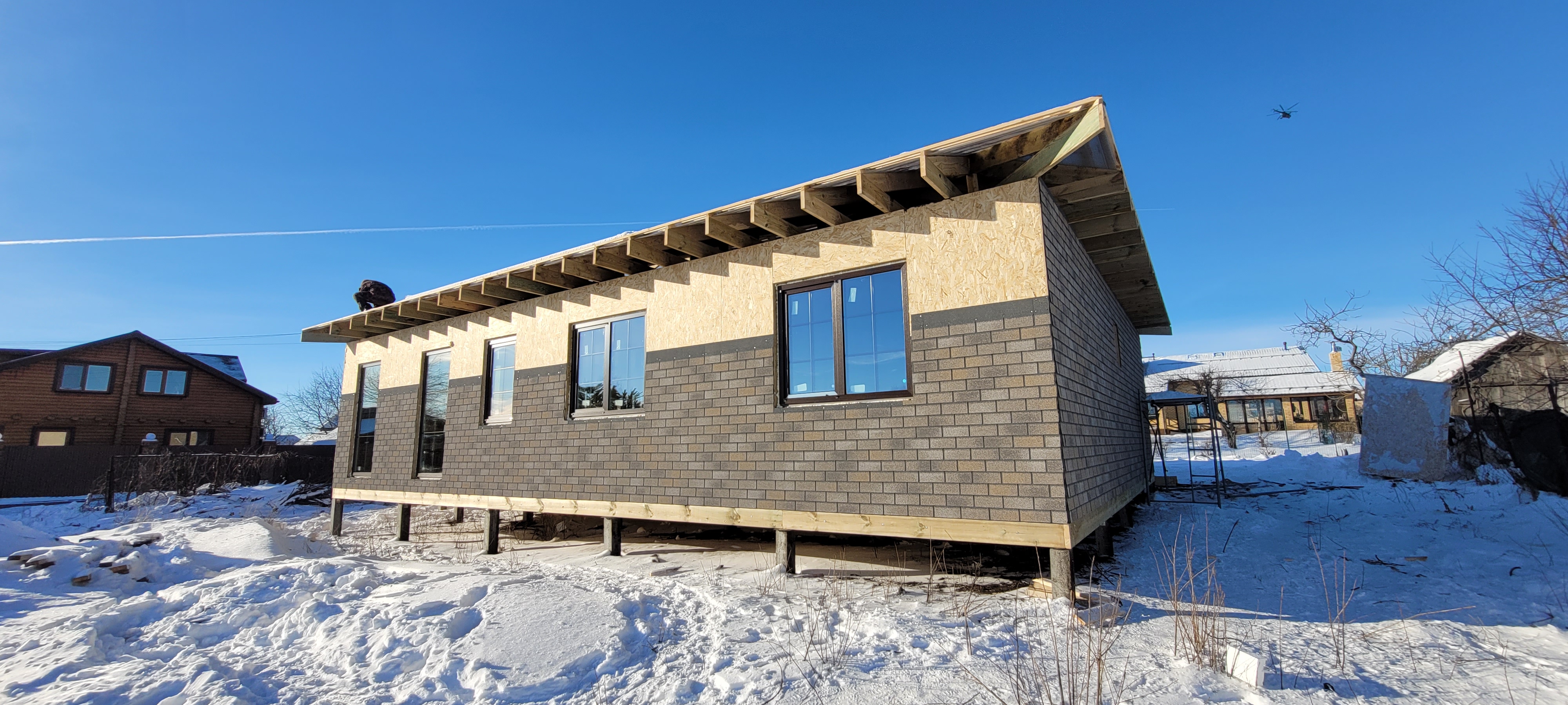 Главная / Портфолио / Дом из СИП панелей. Утепление потолка эковатой