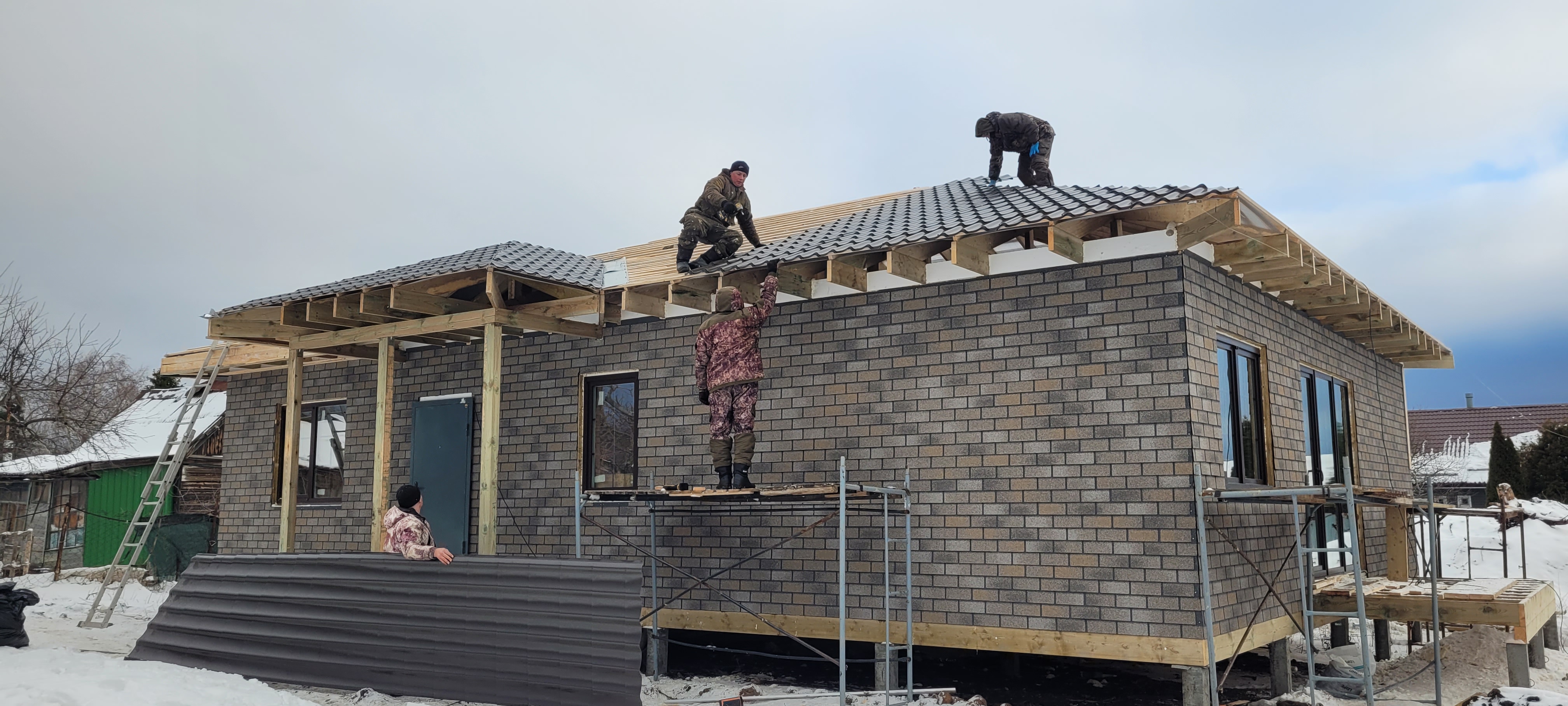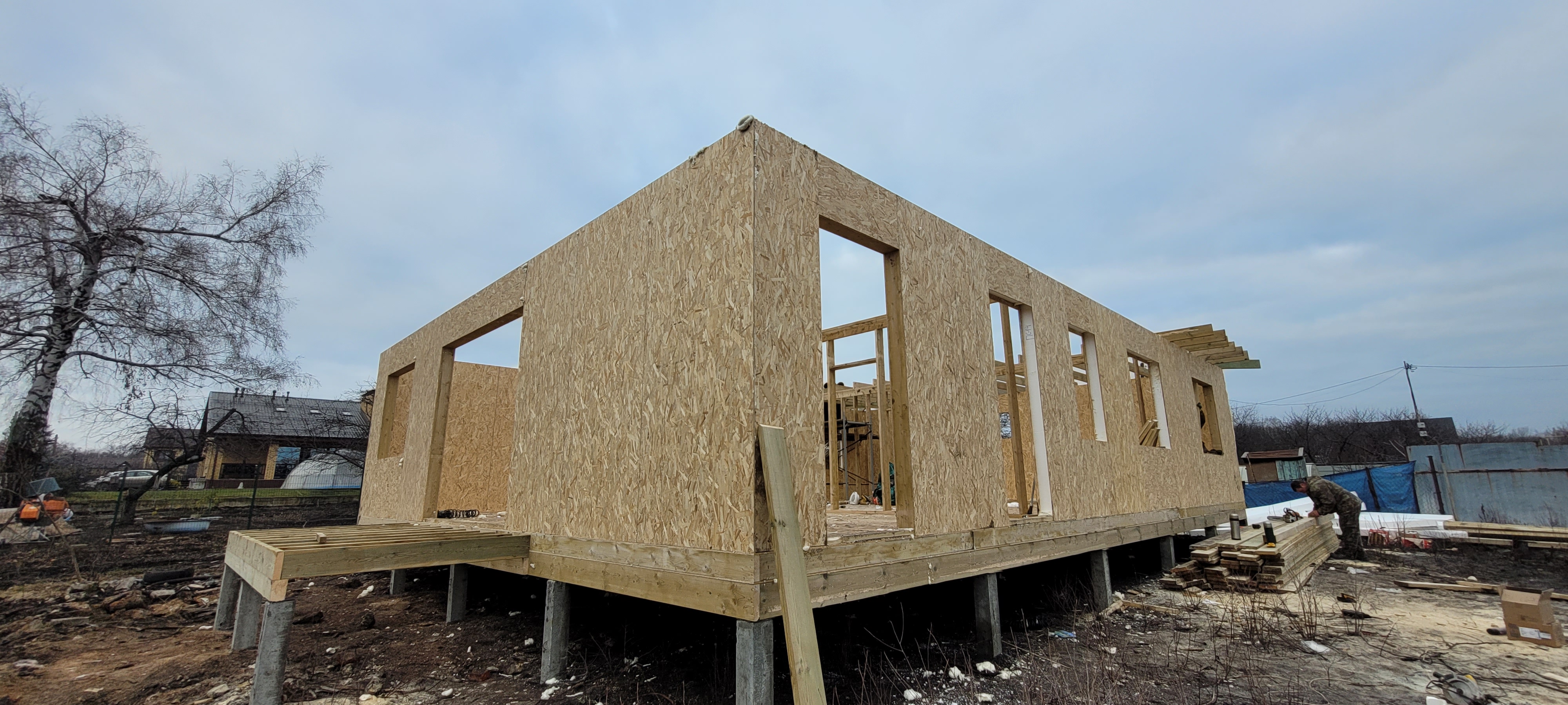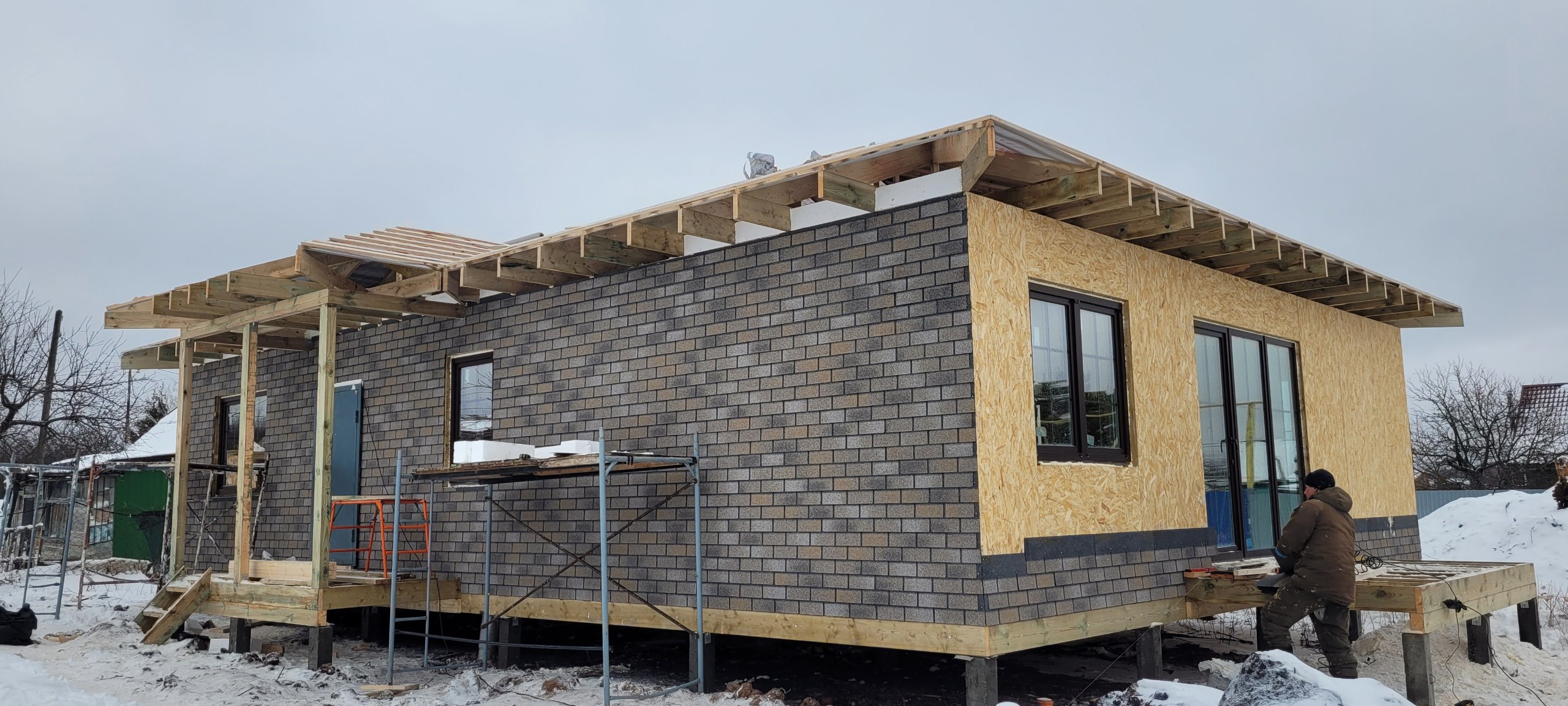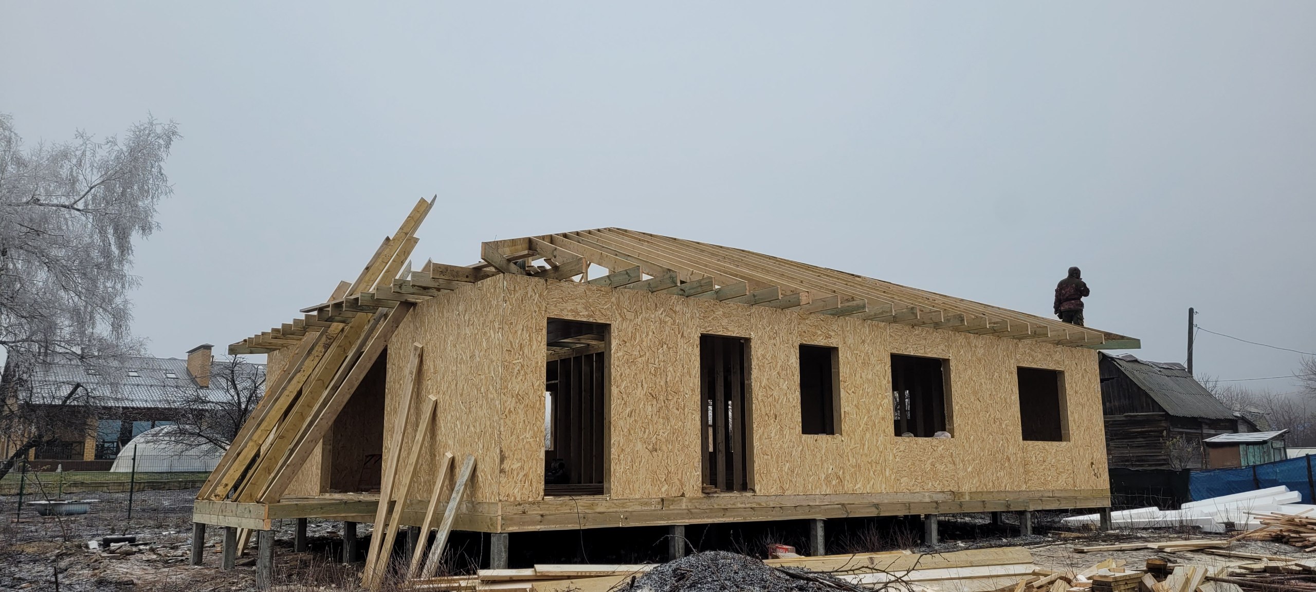 Главная / Портфолио / Дом из СИП панелей. Утепление потолка эковатой